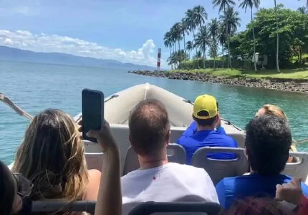 Trajeto de barco pela Costa da Ilha, sentido Centro (trajeto incluindo paradas: 1 hora e meia aproximadamente).