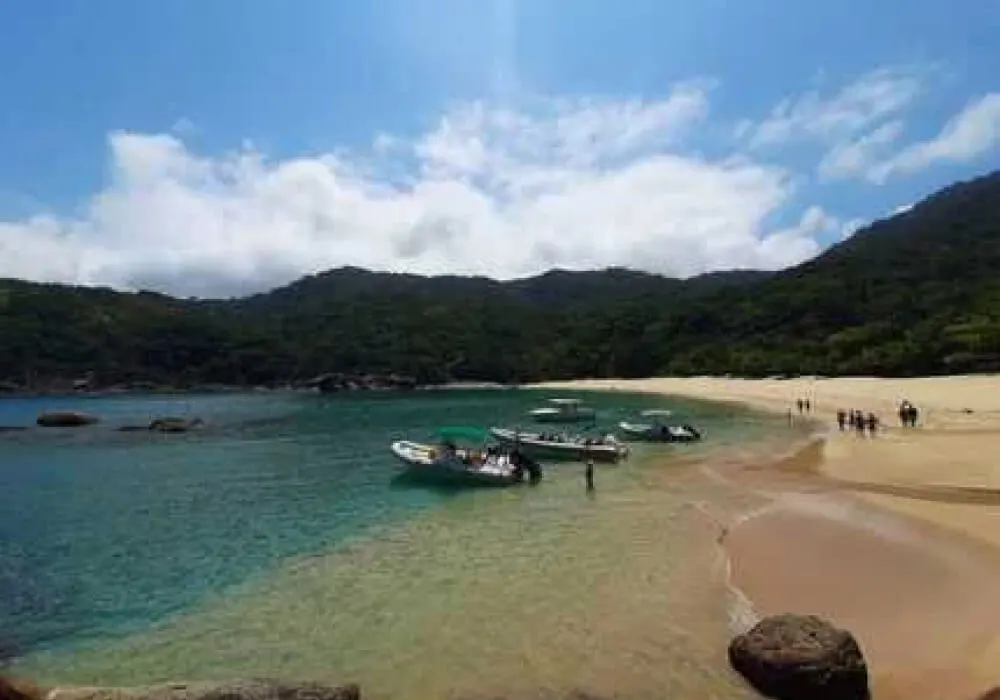 Trajeto de barco pela Costa Sul da Ilha, com destino à praia do Bonete.